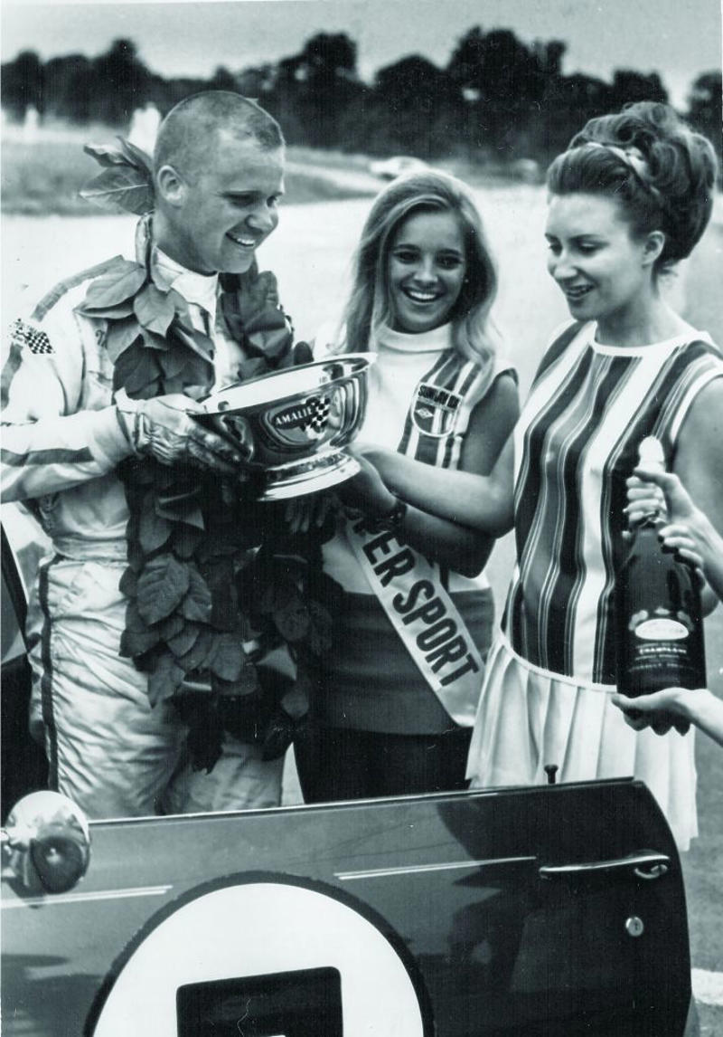 Mark Donohue: March 18, 1937 – August 9, 1975. Raising his first trophy at War Bonnet Raceway Park in May of 1968. A tire failure while practicing for the Austrian Grand Prix led to his untimely death at 38. Image courtesy of Tom McIntyre