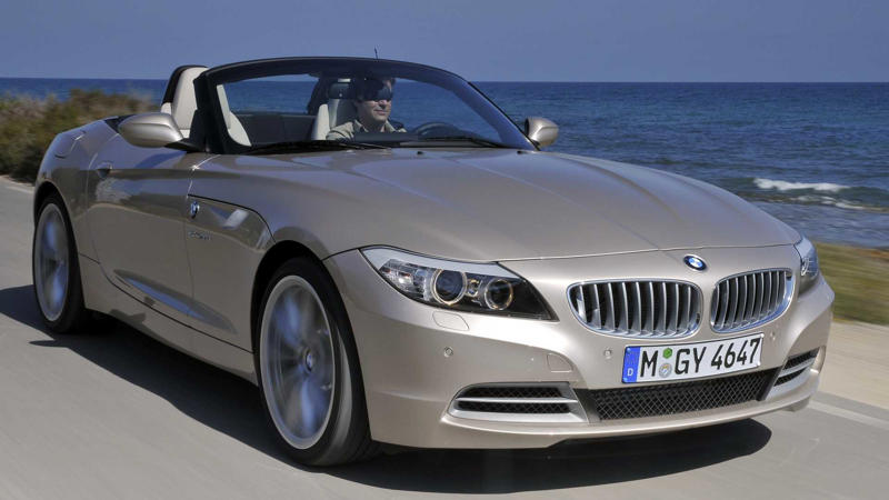 2010 BMW Z4 Gold Roof Down Front Angle Driving