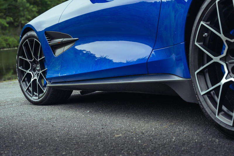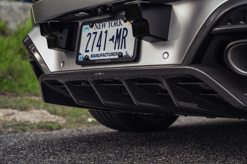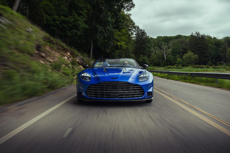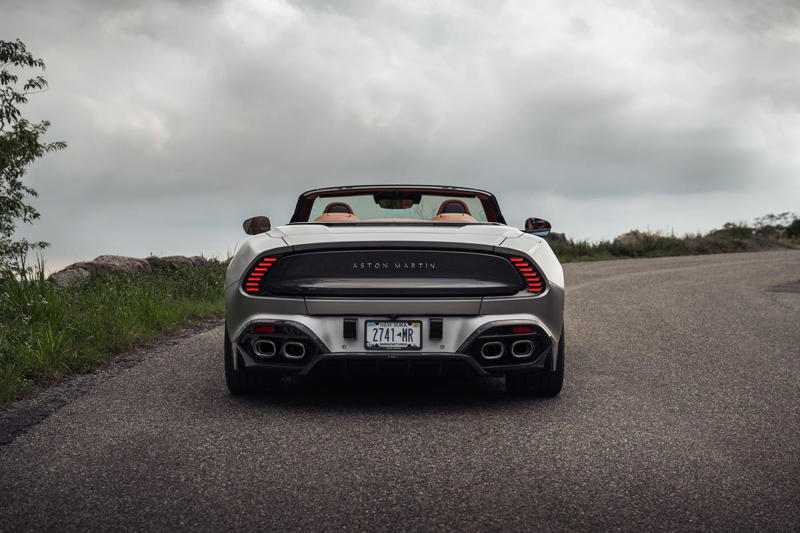 Unlike the lesser DB12, the Vanquish is powered by a V-12 engine, which blurrs the scenery with 823 horsepower.