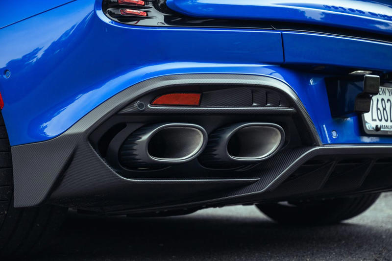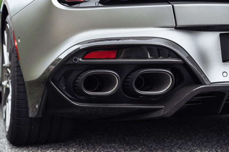 The twin-turbo 5.2-liter V-12 engine sends 738 pound-feet of torque exclusively to the rear wheels.