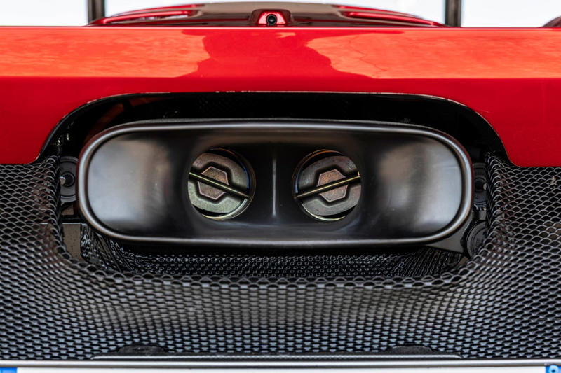 One challenge in designing a car like this: Where do you put a front license plate? Ferrari mounted tiny little European IDs for street driving.