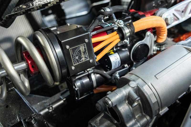 Besides contributing to the F80's 296 hp of electric thrust, the twin front motors enable torque vectoring across the front axle.