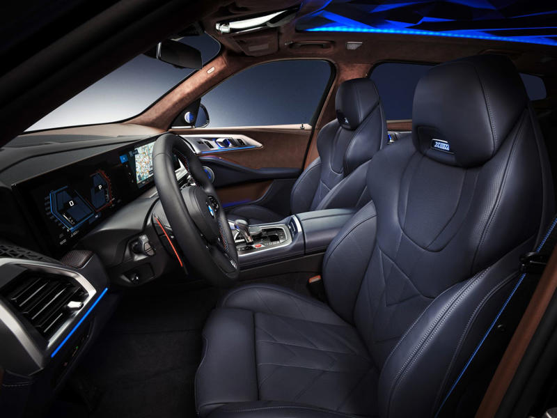 BMW also introduced new upholstery options for the cabin, including the full Merino leather option seen here that combines Night Blue with Vintage Coffee accents.
