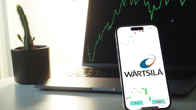 Wärtsilä logo on smartphone in office
