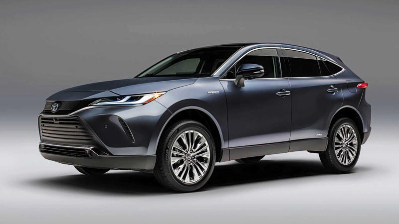 A blue 2021 Toyota Venza midsize hybrid SUV.