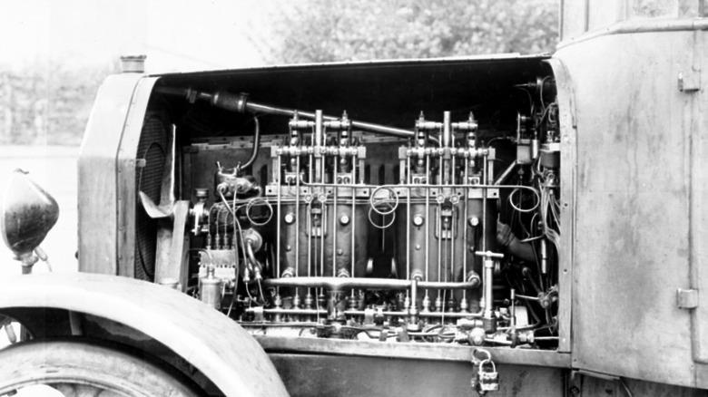 Close-up of engine in a 1923 Benz & Cie. diesel truck