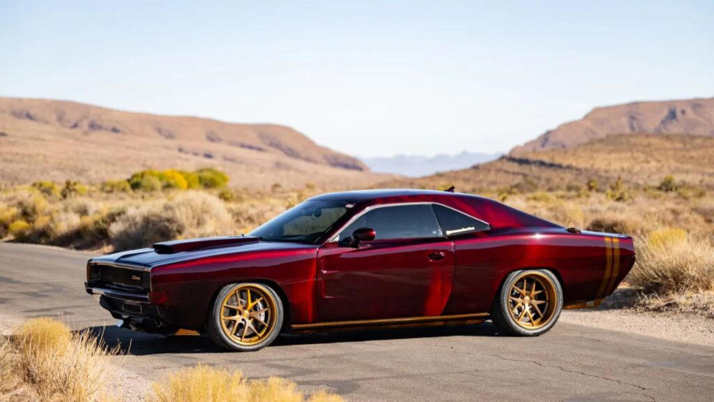 Unveiled at the 2024 SEMA Show, this C68 Carbon build is the 11th example created by EXOMOD, but the first to showcase an exposed carbon-fiber finish. Unlike a standard Hellcat Redeye, this model features a 1968 Dodge Charger-inspired carbon-fiber exoskeleton, finished in a transparent Kandy Apple Red with accents in Pagan Gold Kandy. The result is a wide-bodied, retro-styled muscle car with state-of-the-art materials.