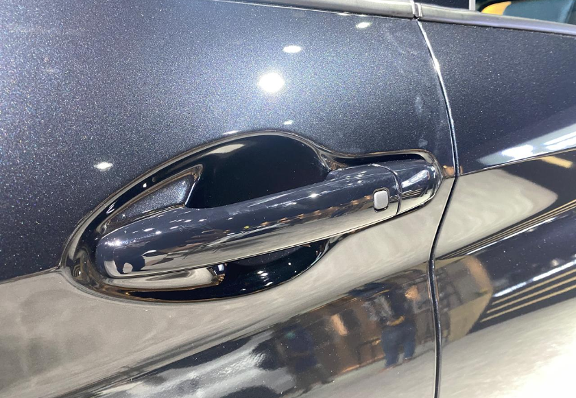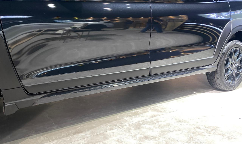 Masih di luar, pada bagian samping tepatnya pada handle pintu juga diberi warna black, begitu juga pada garnish side sill splash dengan lapisan hitam.