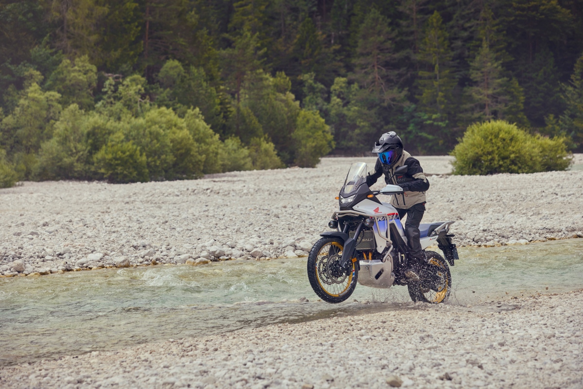 - Showa 43mm USD forks and a Pro-Link rear shock, with settings adjusted for improved stability and off-road control, while maintaining comfort on the highway.