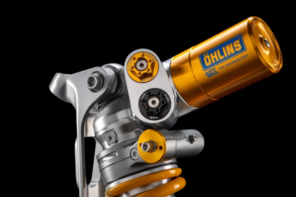 - Suspension up front consists of Öhlins NPX25/30 forks, while the rear features a TTX36 rear shock, plus a new Öhlins SD20 steering damper with revised settings.