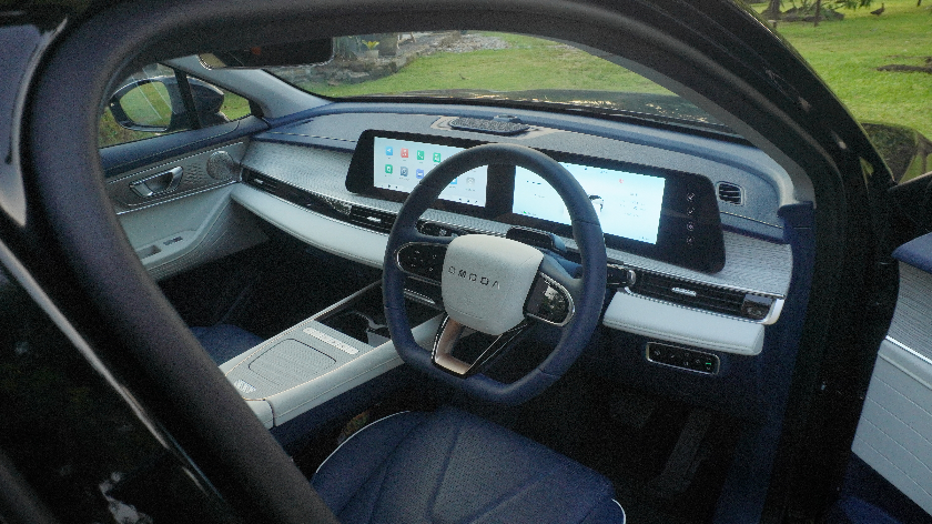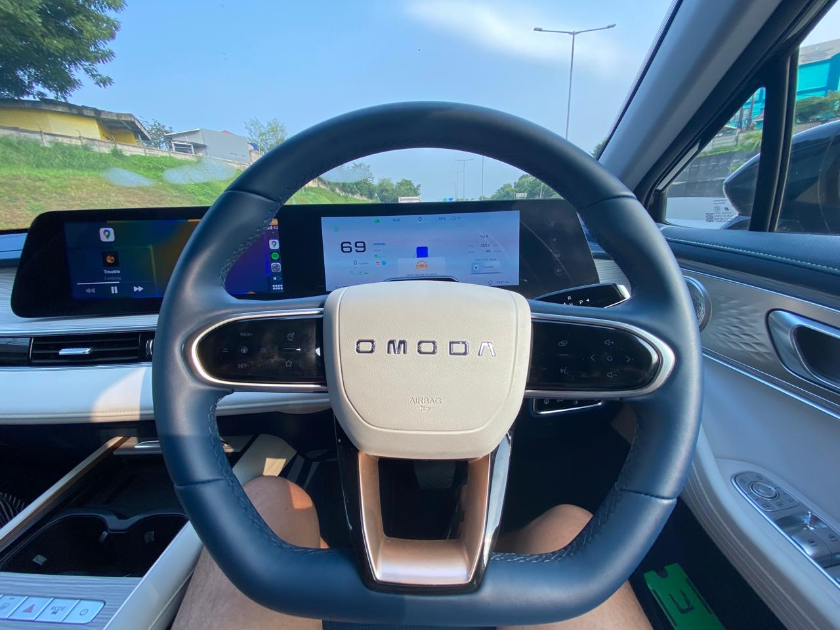 Kerennya lagi Omoda E5 dibekali layar infotainment dan MID yang dirancang menyatu. Bentangan layar infotainmentnya lumayan gede, yakni 24,6 inci, yang sekaligus menampilkan fitur kamera 540 derajat.