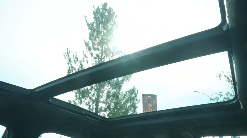 Pada bagian samping tampak desain pelek two-tone 17 inci dibalut dengan ukuran ban 215/55 R17. Lalu di bagian atapnya sudah dilengkapi roof rail dan panoramic sunroof.