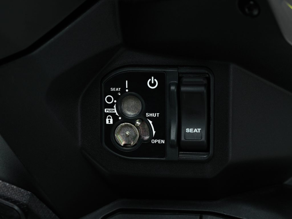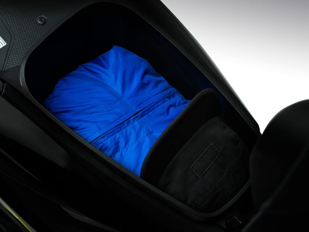 - Terdapat juga kotak penyimpanan bawah tempat duduk yang luas dengan kapasiti 12 liter, yang boleh diakses dengan pembuka satu sentuhan.