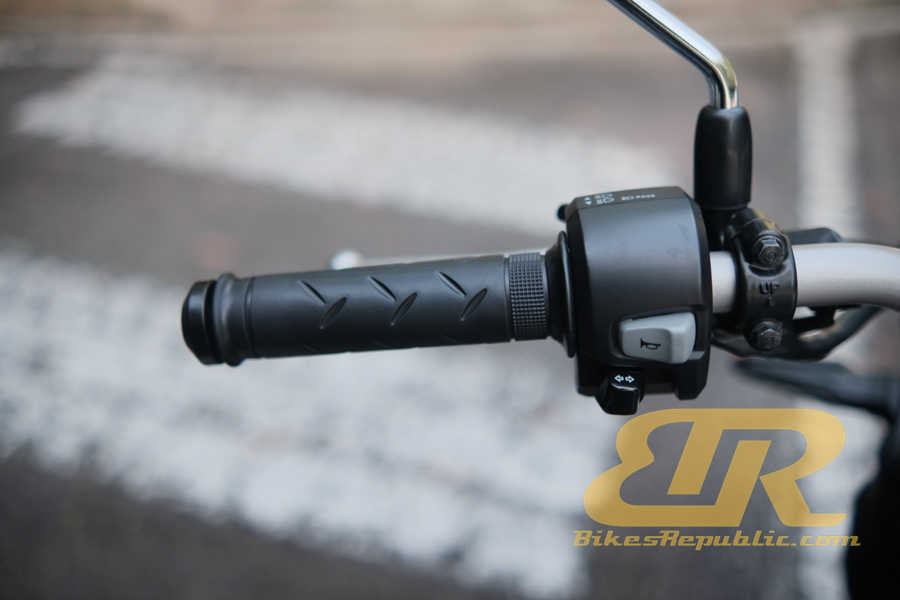 The dimensions of the bike felt so right when we first climbed on. Small around the “waist” (where the seat meets the tank), low seat height, handlebar in the right position. Its low weight shone through even before we began moving. The bike was easy to push around while we were in the saddle. That was a plus point.