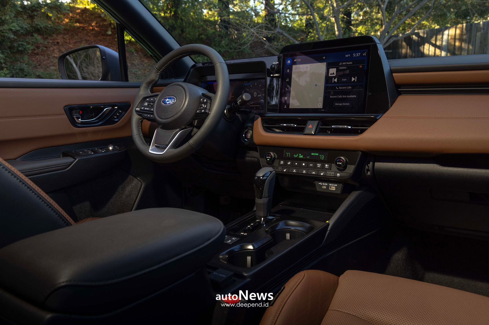 Di bagian dalam, Subaru Outback 2026 mengadopsi desain garis yang lebih tenang dan bersih dengan teknologi dan material yang ditempatkan dengan cermat, termasuk sisipan plafon yang terbuat dari material dari 12 botol plastik daur ulang. Layar infotainment dan kluster instrumen digital yang serba baru disejajarkan untuk kenyamanan dan aksesibilitas, sementara panel dasbor atas dan tata letak interior disejajarkan untuk kesinambungan dan penggunaan sehari-hari. Kontrol iklim memiliki kontrol tombol keras dan kenop khusus. Tempat gelas konsol tengah dirancang agar mudah digunakan, dan tempat botol di setiap pintu kini menyediakan ruang yang cukup untuk botol air 32 ons.