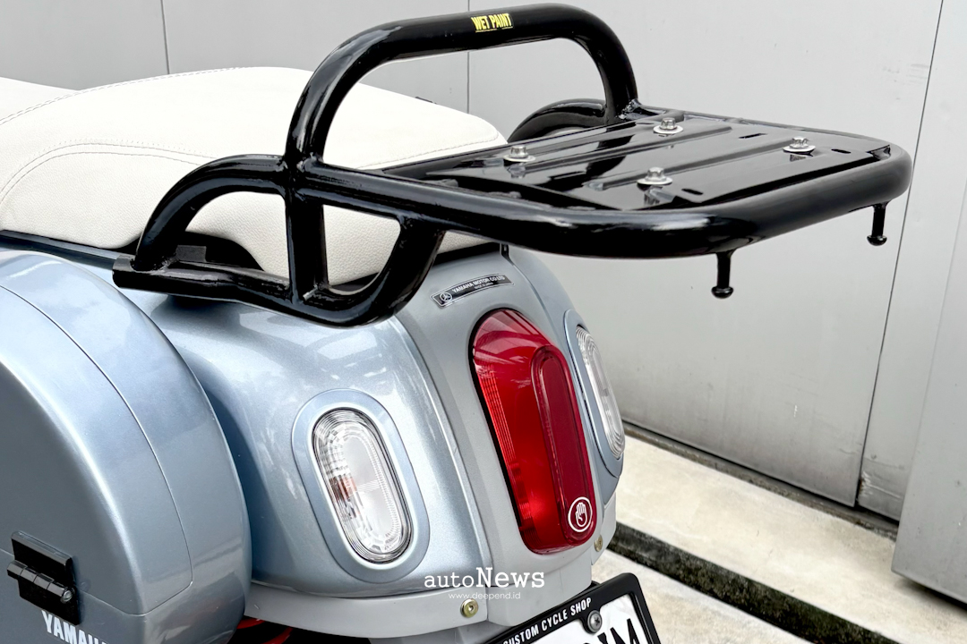 Adalah Kharisma Bima, anak muda Bandung, yang jadi otak di balik modifikasi ini. Ia menggabungkan konsep skuter kargo ala Jepang dengan sentuhan klasik-modern yang kalcer banget. Warna bodi abu-abu metalik dipadu aksen putih di dek kaki, jok, sampai list speedometer, bikin tampilannya clean, modern, tapi tetap retro.