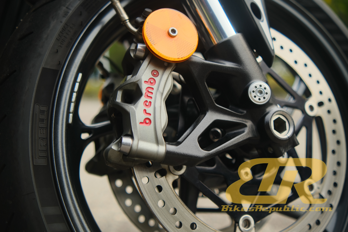 That kind of performance makes the brakes the most powerful component of a motorcycle, contrary to what many believe is the engine. Think about: The force from one or two of your fingers is enough to bring a flying motorcycle down to sane speeds in less time and distance, than the engine takes to accelerate the bike.
