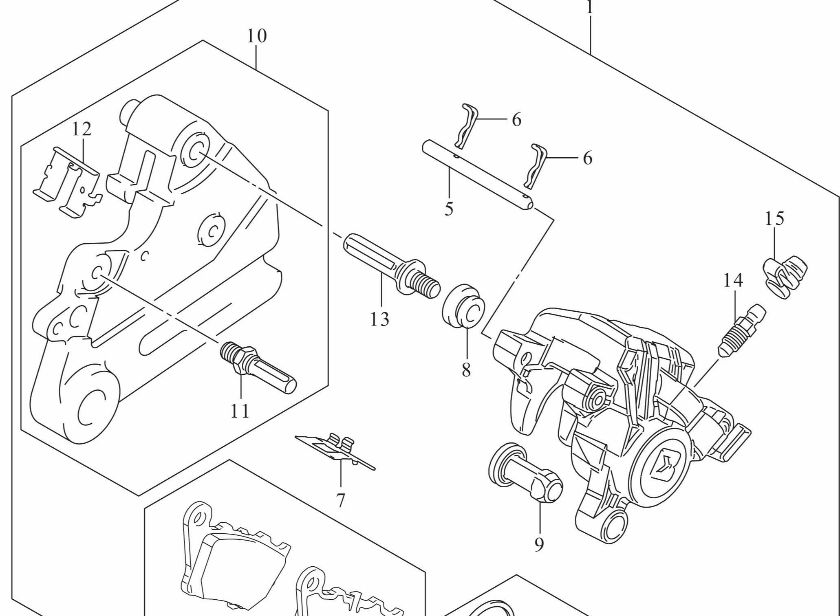 Komponen rear brake caliper bracket (rem belakang) Suzuki GIXXER 250SF