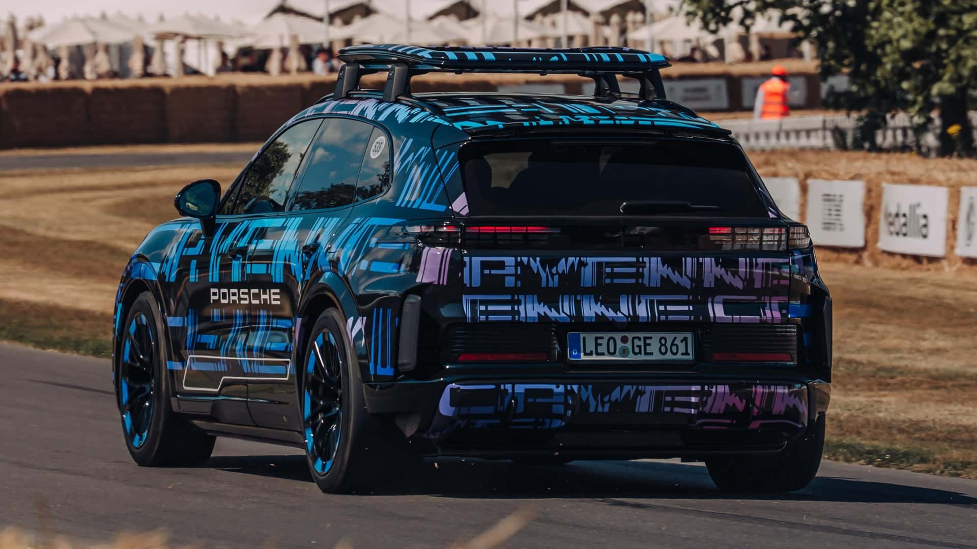 Prototipe yang hampir diproduksi dipamerkan pada akhir pekan di Goodwood Festival of Speed, setelah memecahkan rekor baru-baru ini di tanjakan Shelsley Walsh. Dalam kedua kesempatan tersebut, Gabriela Jílková, simulator dan pembalap pengembangan untuk TAG Heuer Porsche Formula E Team, berada di belakang kemudi Cayenne listrik.