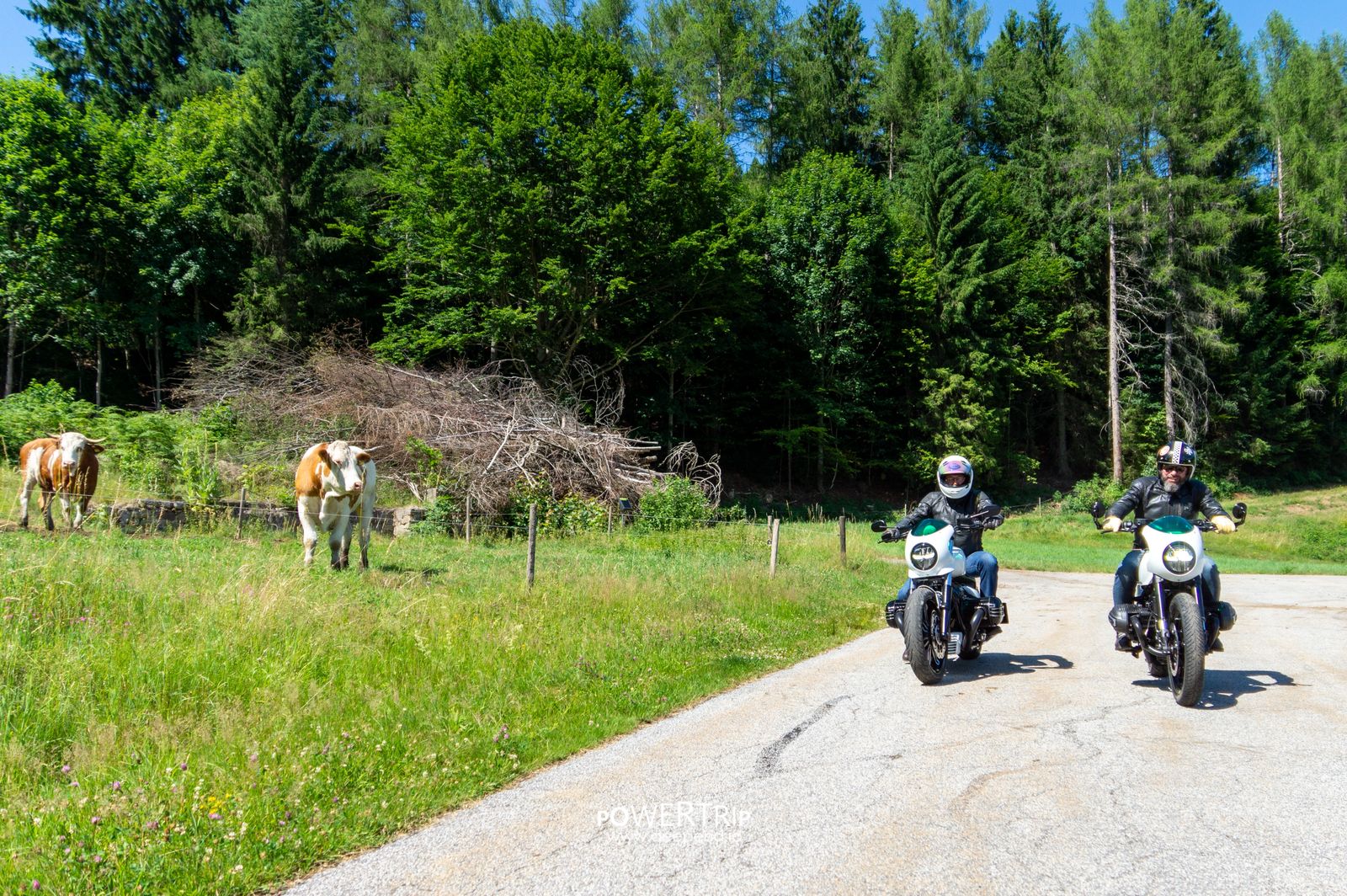 Kedua motor ini memiliki skema warna khas yang melambangkan musim-musim di Hutan Bavaria: ¾ putih, ¼ hijau – sebuah referensi jenaka untuk musim dingin yang terkenal panjang di wilayah tersebut. Rasio warna ini tercermin dalam cat, pelapis jok, dan layar fairing berwarna hijau – sebuah detail kreatif yang menarik banyak perhatian di Garmisch. “Inilah warna-warna Hutan Bavaria,” ujar Ralf Eggl. “Seperti yang kami katakan di sini: Tiga perempat tahun adalah musim dingin, dan seperempat lainnya dingin – itulah Hutan Bavaria.”