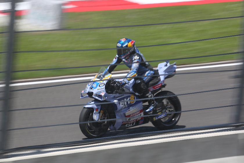 Fabio Di Giannantonio sesaat meninggalkan garasi menuju lintasan ikut sesi FP1