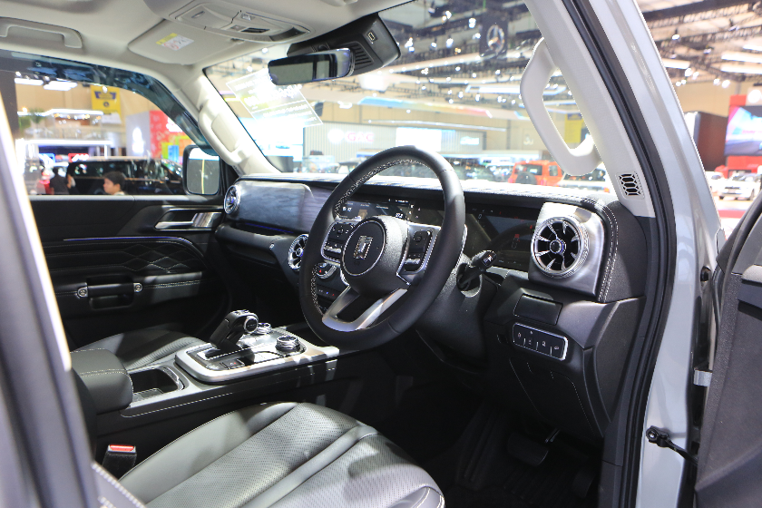 Konsol tengah yang terstruktur rapi terpasangkan tuas transmisi futuristik bergaya aeronautical, dilengkapi quartz clock yang jadi ciri khas kemewahan GWM Tank, kabin kedap suara berkat double-layer soundproof glass.