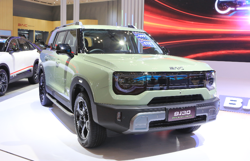 BJ30 mengusung dua motor listrik, motor depan 130 kW/315 Nm dan motor belakang 55 kW/135 Nm, dengan efisiensi hingga 98,5% dan sistem pendingin oli untuk menjaga performa stabil.
