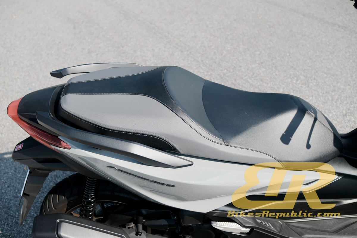 Tempat duduknya cukup rendah walaupun panel sisinya yang besar, dan membolehkan kami meletakkan kaki di atas tanah dengan selamat. Ya, kusyen pelananya kelihatan agak keras pada mulanya, tetapi kami tidak terasa sakit selepas menunggang sepanjang hari.