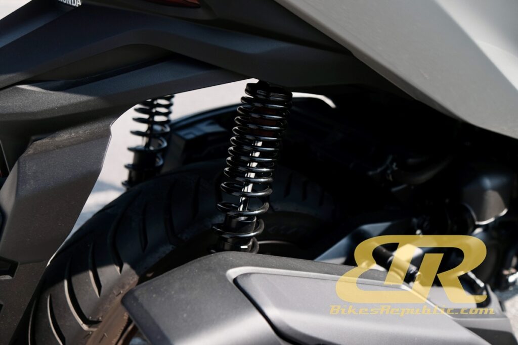 Daripada aspek suspensi pula, hampir semua skuter berasa keras apabila menyentuh bonggol tajam kerana pergerak suspensi yang pendek. Namun, kami benar-benar terkejut dengan skuter NSS250 ini kerana kedua-dua hujungnya menyerap bonggol-bonggol jalan dengan baik tanpa sekali pun terasa seperti hendak pecah buah pinggang. Namun, casisnya tidak melembapkan maklum balas daripada tayar, seperti yang kami nyatakan sebelum ini.