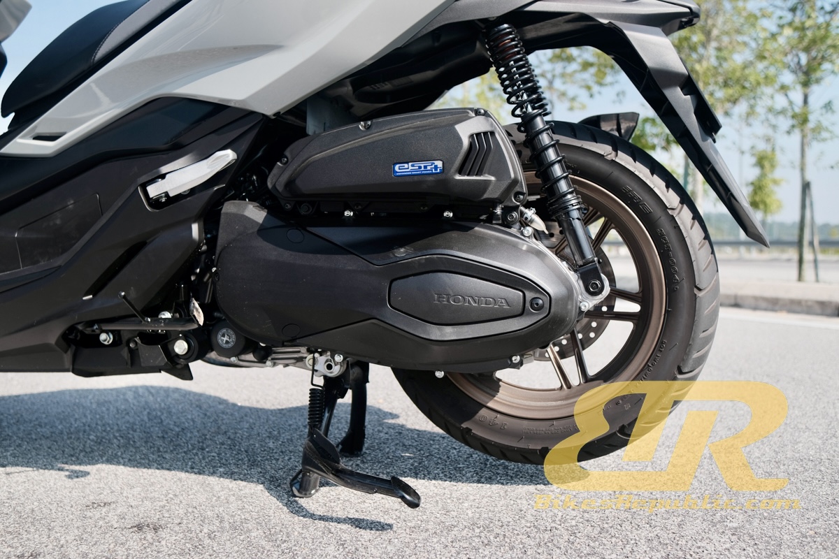 Dengan itu, enjin menyala dengan bunyi vroom yang laju tetapi lancar untuk memberitahu kami ia masih hidup. Memulas pendikit semasa motosikal berada di atas topang tengah tidak menyebabkan ia bergetar sehingga bergerak di atas lantai. Ia kerana enjin NSS250 ini amat lancar.