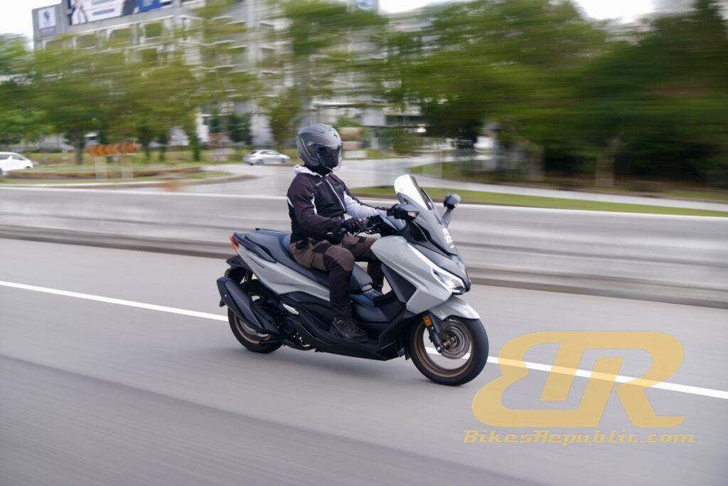 Ya, mana-mana skuter pun senang untuk untuk menukar arah dan membelok, tetapi NSS250 ini membelok dengan stabil, hampir seperti motosikal besar. Bahagian depannya tidak terasa seperti hendak “jatuh” ke dalam selekoh dan tidak bergoyang apabila mengambil selekoh. Suspensi depan dan belakang juga memberikan banyak maklum balas daripada tayar agar kami tahu tahap cengkaman tayar, tidak seperti skuter lain, yang memberikan kami banyak keyakinan untuk bermain selekoh dengan lebih agresif.