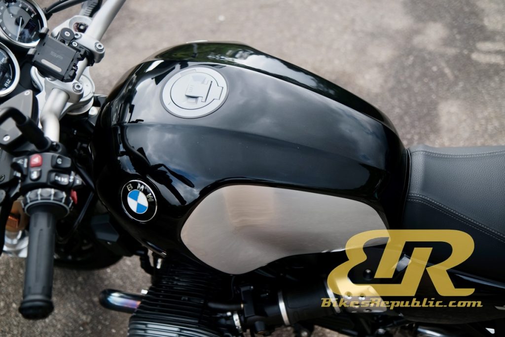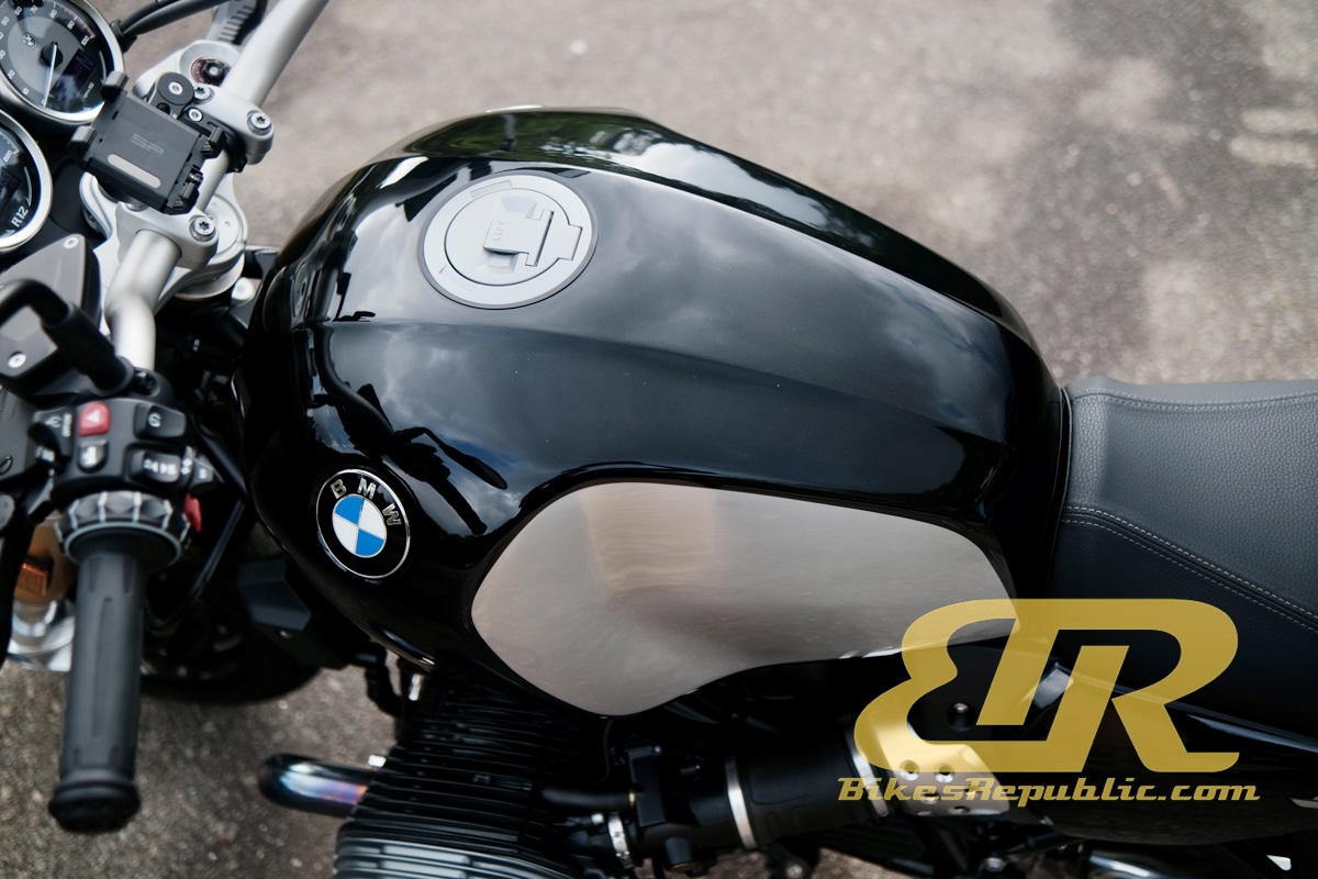 Tangki bahan bakar sebahagiannya dicat, sementara bahagian sisinya dibiarkan dalam aluminium digilap. Ya, model R nineT sebelumnya mempunyai ciri ini, tetapi entah bagaimana ia kelihatan lebih cantik pada motosikal baharu ini.
