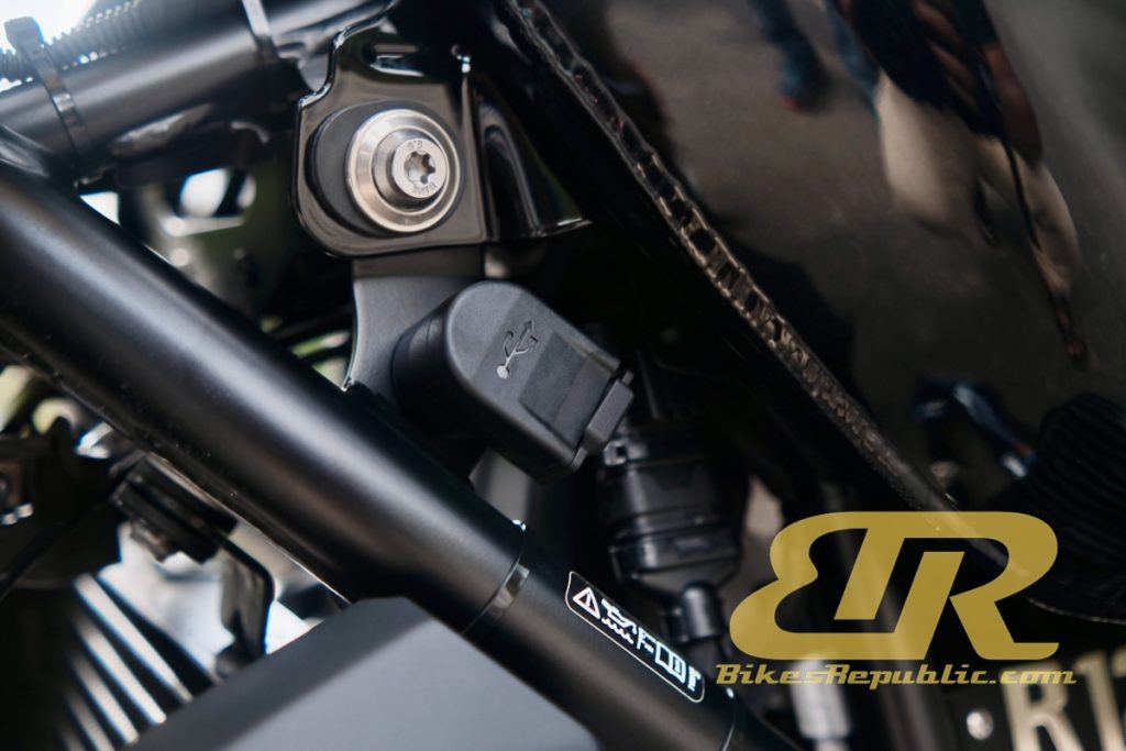 Setelah diperiksa dengan lebih teliti, kami perhatikan bahawa paip pengambilan udara yang menyerupai belalai siput telah dialihkan. Tempat duduk juga jelas lebih rendah, dengan bahagian belakang motosikal berada lebih rendah di atas roda belakang, memberikan rupa yang agak panjang dan rendah.