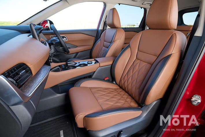 内装に目を向けると、インパネの上部がブラックで統一され、上級グレード「G」にオプション設定されるナッパレザーシートは、落ち着いたブラウンへと変更。標準グレードのシートにも、日本のモダンさを感じさせる上質なクロスが採用されています。