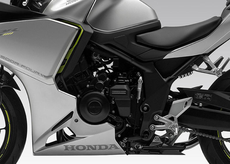 CB500スーパーフォアと同じく、エンジンは新開発の502cc・水冷DOHC4バルブ4気筒。これまでのCB400スーパーフォアに採用されてきた油圧バルブ数制御システム「ハイパーVTEC」は搭載されないが、スロットルバイワイヤを採用。マフラーはCB500スーパーフォアとは異なる、スポーツモデルらしい異形サイレンサーのものが採用されている。
