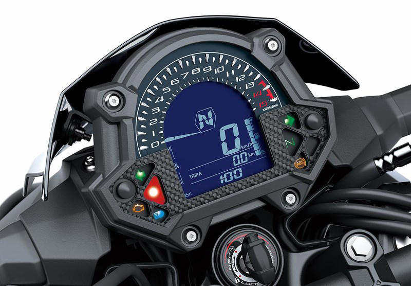 メーターは視認性の高い指針表示のタコメーターとデジタル表示のスピードメーター、ギアポジションインジケーター、燃料計、温度計、エコノミカルライディングインジケーターなどを備えた液晶ディスプレイを装備。コンパクトだが多機能なのが特徴だ。