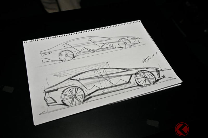 プロジェクトチーフデザイナーの熊井弥彦氏のによるレクサス新型「ES」のデザインスケッチ