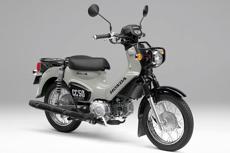 スーパーカブには多くの派生モデルがあるが、異色の存在とも言えるのが実用車臭を消してSUV的なルックスにまとめたクロスカブ。特に50cc版はシリーズ唯一の前後14インチホイールを採用し、17インチホイールのクロスカブ110より44mm低い740mmというシート高を実現。