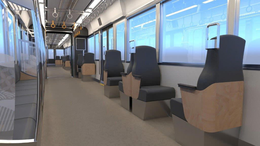 VVVFインバータ制御装置や回生ブレーキを採用することで、既存の1000形(抵抗制御車)比較で消費電力量を約49%削減。車内には防犯カメラや通話型の非常通報装置を設置、バリアフリーにも対応します。