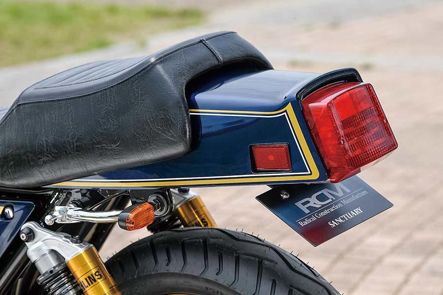その上でこの車両は18インチで純正ライクな仕様でと製作。そのために全長が800mmと18インチ化に適しているφ43mmのゼファー1100用フォークを再生/セットアップして使った。使用パーツのカラーや雰囲気を固定せず、このように作りたい仕様に柔軟に対応する。その適合力や発展性も、RCMの魅力ということだろう。