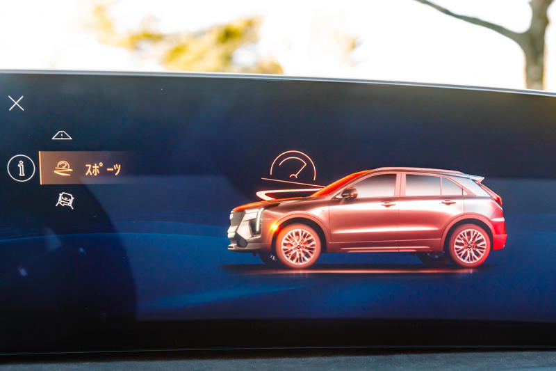 XT4の新しいインテリアのハイライトとなっている大型ディスプレイは、33インチサイズ。エスカレードの有機ELに対して、XT4のそれは超高解像度(9K)のLEDだそうだが、いずれにしても、その方面では素人の筆者にはキレイとしかいえない映りである。