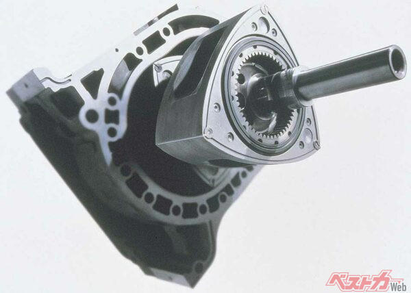 写真は13B型ロータリーエンジン。この後RX-8のRENESIS REへと引き継がれる