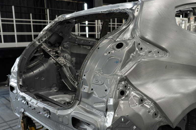 モータースポーツで通用するための専用設計が施されてたGRヤリスのリアゲート開口部。GRファクトリーではラリー2で使用されるGRヤリスのホワイトボディも生産している。