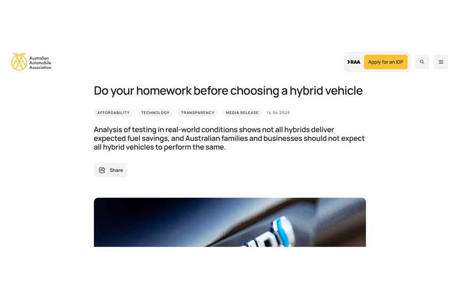 リポート「Do your homework before choosing a hybrid vehicle(ハイブリッド車を選ぶ前に下調べを)」(画像:オーストラリア自動車協会)