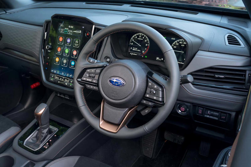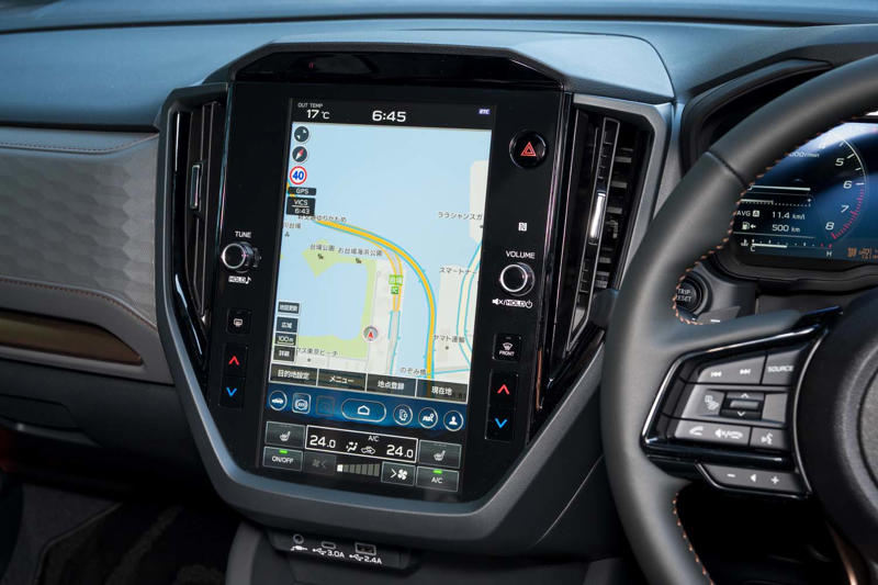装備については至れり尽くせり、私にしたら夢のクルマだ。最新世代の「アイサイト」に、でかいセンターディスプレイ、カーナビ、ETC車載器はいずれも全車標準装備だし、今回の試乗車には、スマホのワイヤレス充電器やハンズフリー電動テールゲートまで標準で搭載されていた。