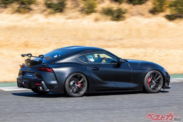 何よりも驚いたのがそのハンドリングだ。スプリングはアイバッハ製でレートはベース車の約2倍。スタビは前後とも強化され、ダンパーはスープラのGT4マシンと同じKW製。