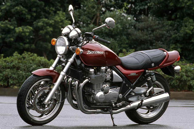 Kawasaki ZEPHYR1100 1992年総排気量:1062cc エンジン形式:空冷4ストDOHC2バルブ並列4気筒 シート高:795mm 乾燥重量:243kg発売当時価格:84万9000円