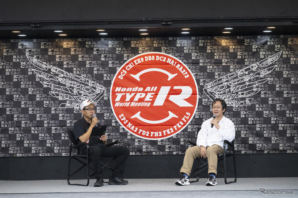 それに続いたのが、タイプRを日本一売るディーラー、ホンダカーズ野崎の松本正美店長と、ホンダのエンジン開発に長年携わる大長尚氏による、K20C開発ストーリー。松本店長はかつて無限でF1エンジンの設計を手掛け、F1店長の愛称でも知られる人物だけに、幻の5リットルV10エンジンや、シビック・タイプRとアキュラ・インテグラ・タイプSのK20Cの仕様差など、突っ込んだ話で盛り上がった。
