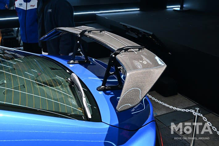 足元には、STI製フレキシブルハイパフォーマンスホイール(19インチ)にタイヤはミシュラン「パイロットスポーツ4S」(255/35R19)が組み合わされ、見た目の精悍さと走行性能の両立を図っています。