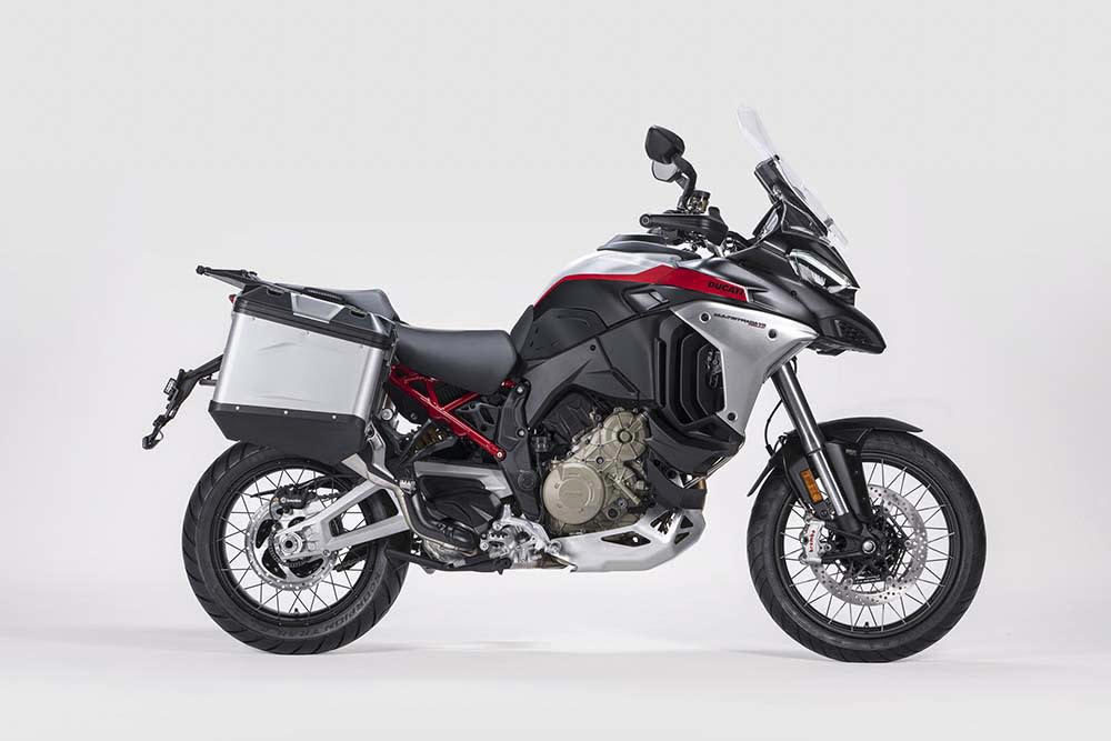 ムルティストラーダは7種類のラインアップがありますが、ここでは発表されたばかりのV4 Rallyをピックアップ。Desert Xと違いオフロードに向いているとは言えませんが、多くの電子制御デバイスを用いた長距離向きのアドベンチャーモデルです。排気量は1158cc、30Lタンクを搭載し、風よけのシールドの性能もよく、ロングツーリングの快適性はお墨付き。走行中に2気筒を停止させることで燃費を向上させるエクステンデッド・ディアクティベーション機能を搭載しています。ホイールサイズは19-17。